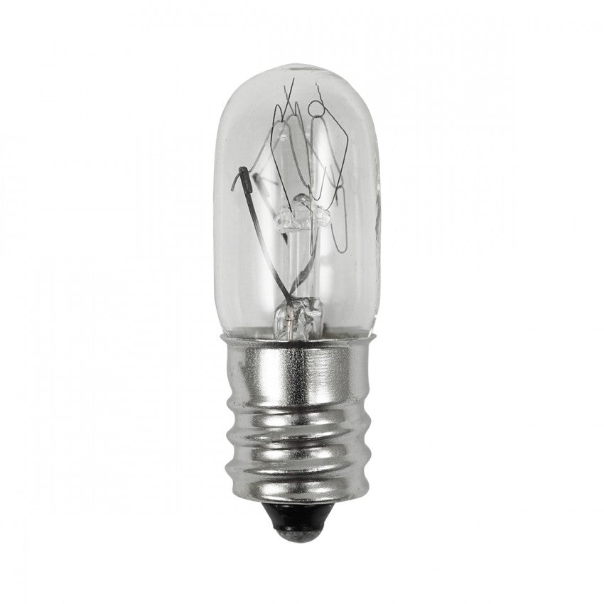130V, 15W, T4 1/2 Miniature Bulb, E12, Dimensions: 1.68 in. Length x 0.57 in. Diameter, Clear
