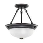 2 Light; 11 in.; Semi-Flush with Frosted White Glass