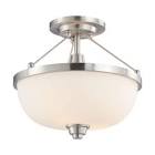 Helium; 2 Light; Semi-Flush Fixture with Satin White Glass