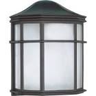 1 Light; 10 in.; Cage Lantern Wall Fixture; Die Cast; Linen Acrylic Lens