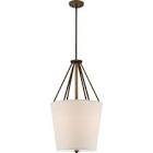 3 Light; Seneca 17 in.; Pendant; Mahogany Bronze Finish with Wrapped Rope; Beige Linen Fabric Shade; Etched Glass Diffuser