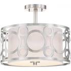 Filigree; 2 Light; Semi-Flush Mount; White Linen Fabric Shade; Beige Linen Fabric Shade