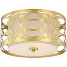 Filigree; 2 Light; Flush Mount; Natural Brass Finish; Beige Linen Fabric Shade