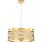 Filigree; 3 Light; Pendant; Natural Brass Finish; Beige Linen Fabric Shade
