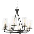 8 Light; Sherwood Chandelier; Iron Black with Brushed Nickel Accents Finish; Clear Glass; Lamps Included