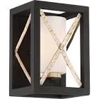 1 Light; Boxer Wall Sconce; Matte Black with Antique Silver Accents Finish; Satin White Glass