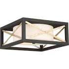 2 Light; Boxer Flush Mount Fixture; Matte Black with Antique Silver Accents Finish; Satin White Glass