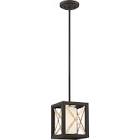 1 Light; Boxer Mini Pendant; Matte Black with Antique Silver Accents Finish; Satin White Glass
