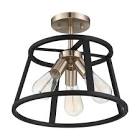 Chassis; 3 Light; Semi-Flush Mount Fixture; Copper Brushed Brass Finish with Matte Black Frame