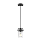 Antebellum; 1 Light; Mini Pendant Fixture; Matte Black Finish with Clear Glass