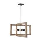 Beacon; 4 Light; Large Pendant Fixture; Black with Honey Wood Finish