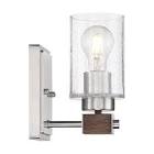 Arabel; 1 Light; Vanity; Brushed Nickel and Nutmeg Wood Finish with Clear Seeded Glass