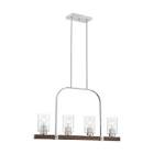 Arabel; 4 Light; Island Pendant Fixture; Brushed Nickel and Nutmeg Wood Finish with Clear Seeded Glass