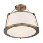 Cutty; 3 Light; Semi-Flush Fixture; Burnished Brass Finish with White Fabric Shade