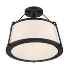 Cutty; 3 Light; Semi-Flush Fixture; Matte Black Finish with White Fabric Shade