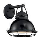 Upton; 1 Light; Small Outdoor Wall Sconce Fixture; Gloss Black Finish with Silver and Textured Black Accents