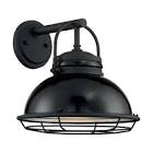 Upton; 1 Light; Large Outdoor Wall Sconce Fixture; Gloss Black Finish with Silver and Textured Black Accents