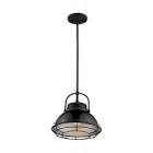 Upton; 1 Light; Large Pendant Fixture; Gloss Black Finish with Silver and Textured Black Accents