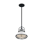 Upton; 1 Light; Small Pendant Fixture; Gloss White Finish with Textured Black Accents