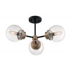 Axis; 3 Light; Semi-Flush Fixture; Matte Black Finish with Brass Accents; Clear Glass