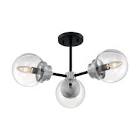 Axis; 3 Light; Semi-Flush Fixture; Matte Black Finish with Brushed Nickel Accents; Clear Glass