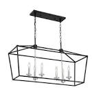 Storyteller; 6 Light; Island Pendant Fixture; Matte Black Finish with Polished Nickel Accents
