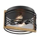 Atelier; 2 Light; Flush Mount Fixture; Black and Honeywood Finish