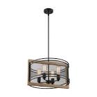 Atelier; 4 Light; Pendant Fixture; Black and Honeywood Finish