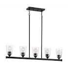 Bransel; 5 Light; Island Pendant Fixture; Matte Black Finish with Clear Seeded Glass