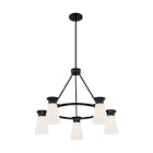 Caleta; 5 Light; Chandelier Fixture; Black Finish with Frosted Cylindrical Glass