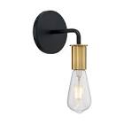 Ryder; 1 Light; Wall Sconce Fixture; Black Finish with Brushed Brass Sockets