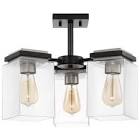 Crossroads; 3 Light Semi-Flush Fixture; Matte Black with Clear Glass