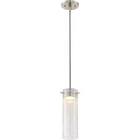 Pulse; LED Mini Pendant with Clear Crackle Glass; Brushed Nickel Finish