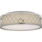 15 in.; Filigree LED Decor Flush Mount Fixture; Polished Nickel Finish; White Fabric Shade