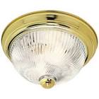 2 Light - 11" Flush with Clear Ribbed Swirl Glass - Polished Brass Finish