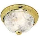 2 Light - 13" Flush with Clear Ribbed Swirl Glass - Polished Brass Finish