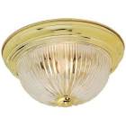 2 Light - 11" Flush with Clear Ribbed Glass - Polished Brass Finish