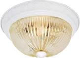 2 Light - 11" Flush with Clear Ribbed Glass - Textured White Finish