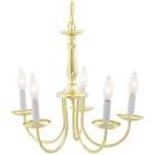 5 Light - 18" - Chandelier - with Candlesticks - Polished Brass Finish