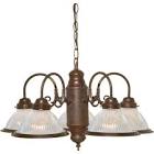 5 Light - 22" - Chandelier - With Clear Ribbed Shades - Old Bronze Finish