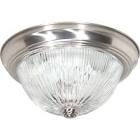3 Light - 15" - Flush Mount - Clear Ribbed Glass - Brushed Nickel Finish