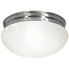 2 Light - 12" - Flush Mount - Large Alabaster Mushroom - Brushed Nickel Finish