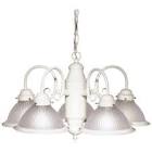 5 Light - 22" - Chandelier - With Frosted Ribbed Shades - Textured White Finish