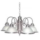 5 Light - 22" - Chandelier - With Frosted Ribbed Shades - Brushed Nickel Finish