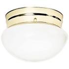 2 Light - 10" - Flush Mount - Medium White Mushroom - Polished Brass Finish