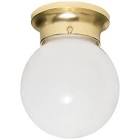 1 Light - 6" - Ceiling Fixture - White Ball - Polished Brass Finish