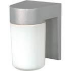 1 Light - 8" - Utility; Wall Mount - With White Glass Cylinder - Satin Aluminum Finish