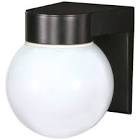 1 Light - 8" - Utility; Wall Mount - With White Glass Globe - Black Finish