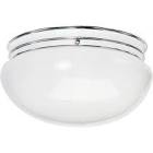 2 Light - 12" - Flush Mount - Large White Mushroom - Polished Chrome Finish
