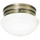 1 Light - 8" Flush with White Glass - Antique Brass Finish